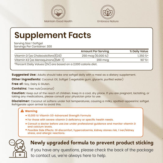 High-Potency Vitamin D3 K2 MK-7 | Complete Bone & Cardiovascular Support in Coconut Oil | 300 Softgels, Easy to Swallow