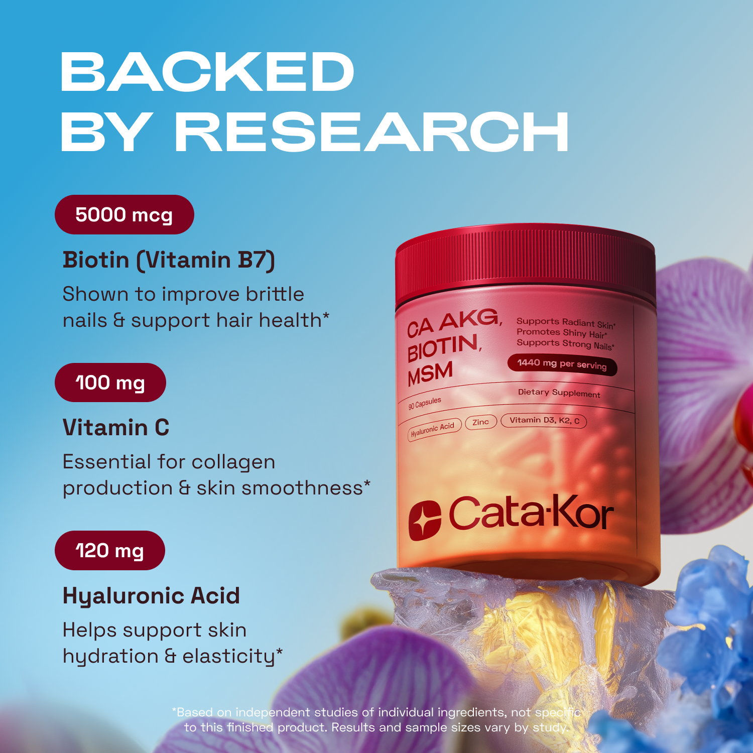Cata-Kor Skin, Hair & Nails Supplement – Ca AKG, MSM, Hyaluronic Acid, Biotin-store