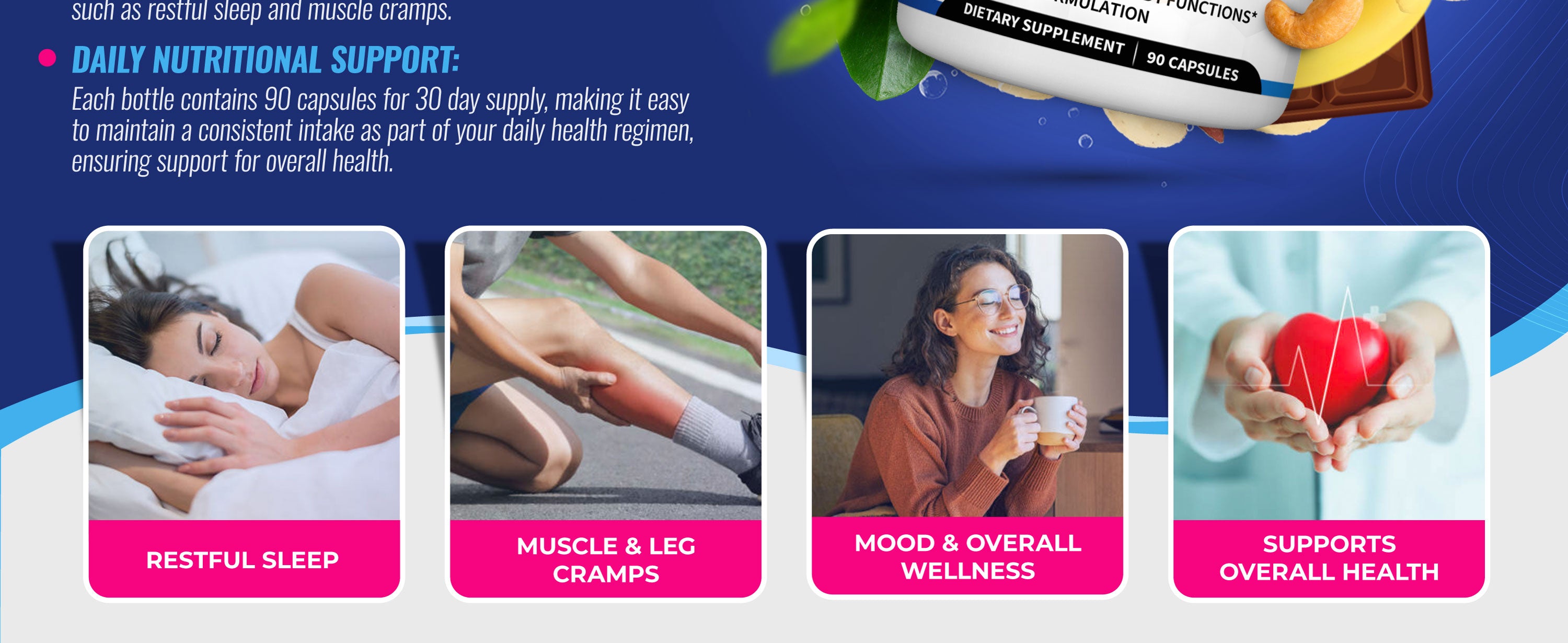 Experience deeper. rejuvenating rest as our Magnesium Complex is a natural support. By calming the system. it plays a pivotal role in promoting a tranquil night's rest. allowing your body to get the rest it needs for optimal health.*